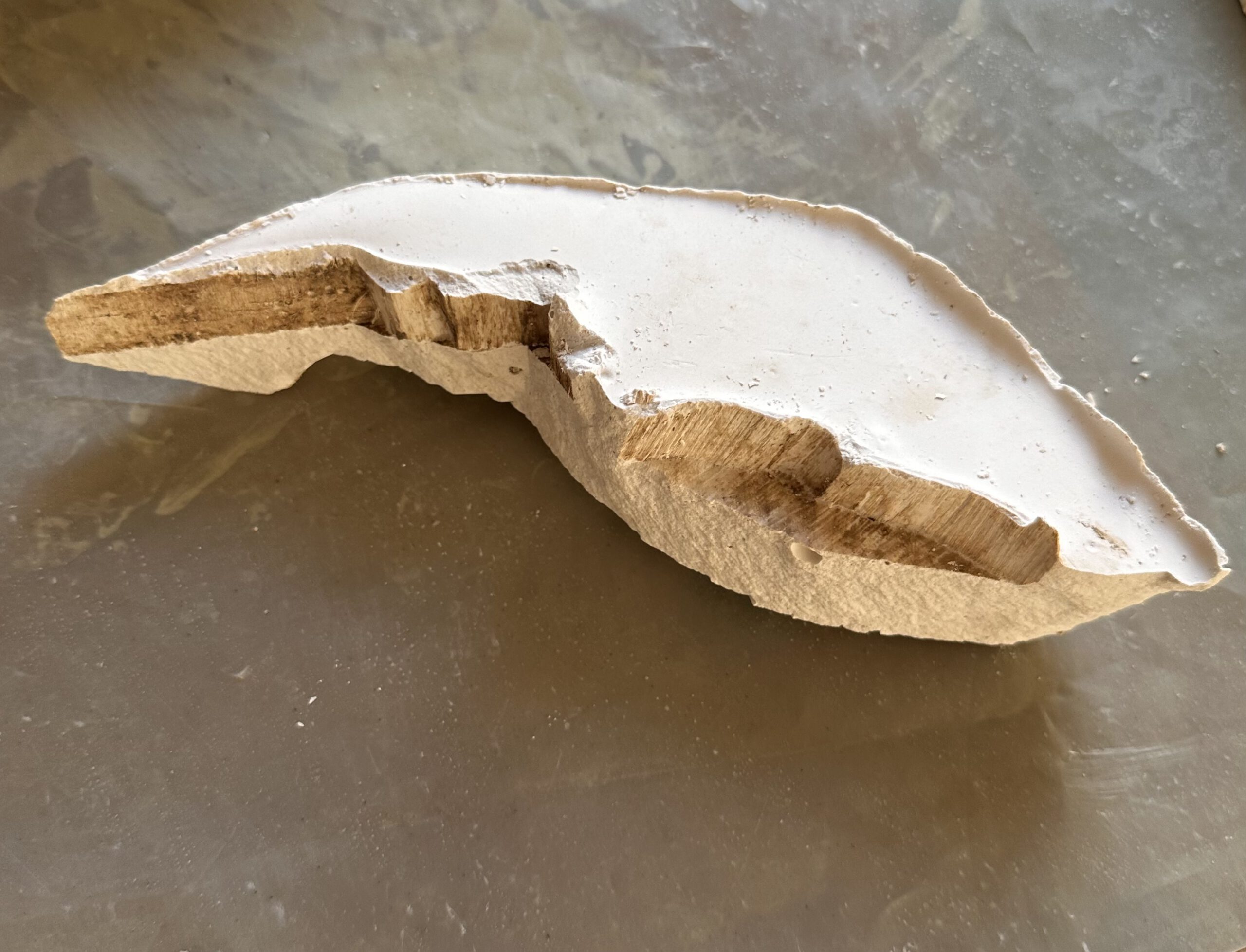 Clay, plaster, wood and experimental materials tracing transformation and distortion.