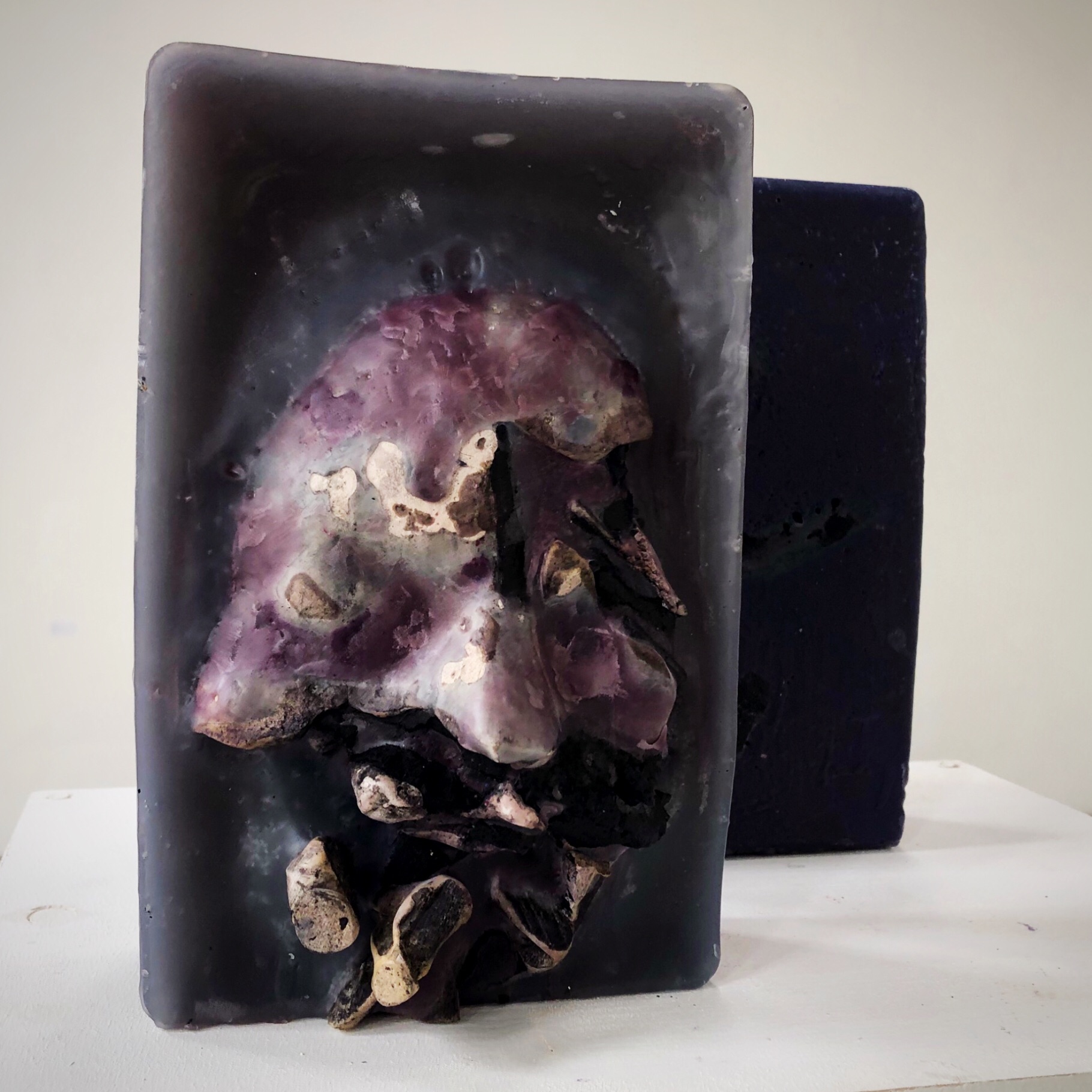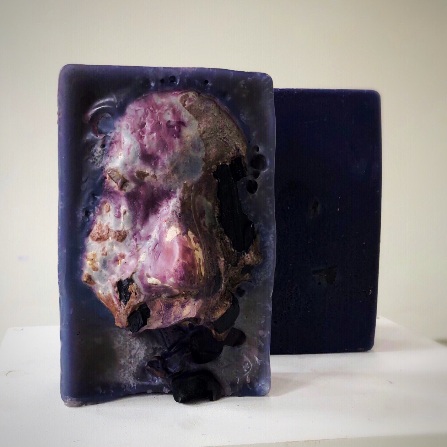 Masks / Masken Mask I - plaster, wood, shellac, pigment / Gips, Holz, Schellack, Pigment - xcm, 2019 Mask VII - plaster, shellac, pigment, coal / Gips, Schellack, Pigment, Kohle - xcm, 2019 Face Red No.1 - plaster, wax, paint / Gips, Wachs, Farbe - 8x14x17cm, 2018 Face Black No.1 - plaster, paint / Gips, Farbe - 15x10x20cm, 2018 Mask II - plaster, wax / Gips, Wachs - xcm, 2019 Mask VIII - plaster, shellac, pigment, coal / Gips, Schellack, Pigment, Kohle - xcm, 2019 Face Red No.2 - plaster, wax, paint / Gips, Wachs, Farbe - 9x14x17cm, 2018 Face Black No.2 - plaster, paint / Gips, Farbe - 10x14x20cm, 2018 Mask III-V - plaster, shellac, pigment / Gips, Schellack, Pigment - xcm, 2019 Mask VI - plaster, shellac, pigment / Gips, Schellack, Pigment - xcm, 2019 Face Red No.3 - plaster, wax, paint / Gips, Wachs, Farbe - 7x14x17cm, 2018 Face Black No.3 - plaster, paint / Gips, Farbe - 7x12x17cm, 2018